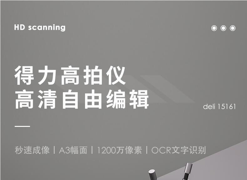 得力15161高拍儀1200萬像素高清A3辦公文件PDF文檔證件發(fā)票拍照掃描機(jī)視頻錄制掃描儀