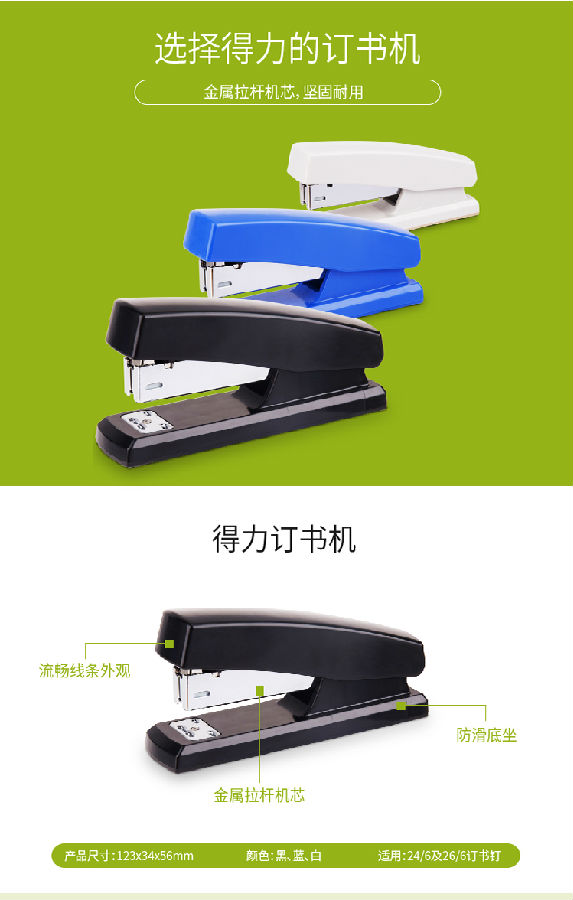 得力(deli)20頁經(jīng)典耐用訂書機(jī)/訂書器(適用12#釘) 黑色0425